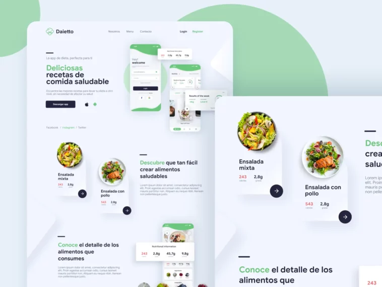 This is a beautiful landing page template for a healthy food app called Daietto. Nice layout and lovely color scheme. This new XD free resource created and shared by Mauricio Lopez. Thanks for sharing this freebie.