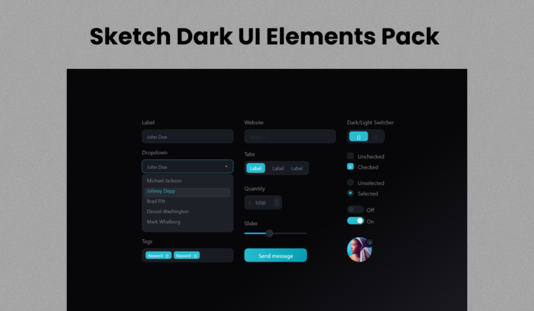 The following set of dark UI elements are made in Sketch and can be used for designing apps, dashboards, and other web interfaces that work in dark mode. Thanks to Chris Bontas for providing these resources.