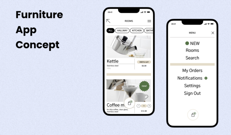This furniture app e-commerce concept has a minimal UI and a flat Design. thanks to attracting the group for making it available for free.