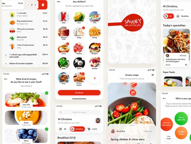 This Savory App UI Kit Sketch is an amazing feature of the food app UI kit. This was shared by a very talented guy Dorin Andrei.
