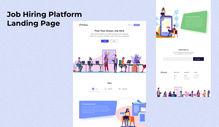 Design of a modern job search platform landing page in Sketch. Thanks a lot to Atiqur Rahaman for sharing this sketch freebie resource.